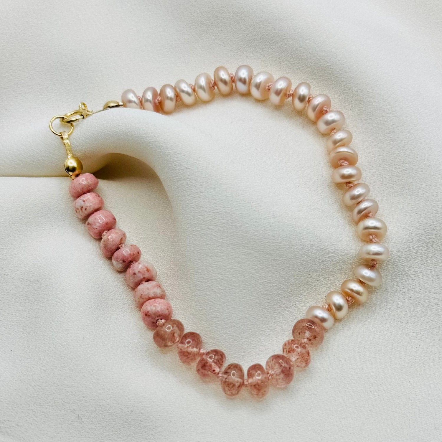 Experience the beauty of our unique collections, featuring a harmonious fusion of radiant pearls and an array of enchanting gemstones like pink amethyst, lapis, chalcedony, chrysoprase, peridot, fluorite, citrine, carnelian, yellow onyx, peach moonstone, sunstone, pink strawberry quartz, and Mozambique red garnet.