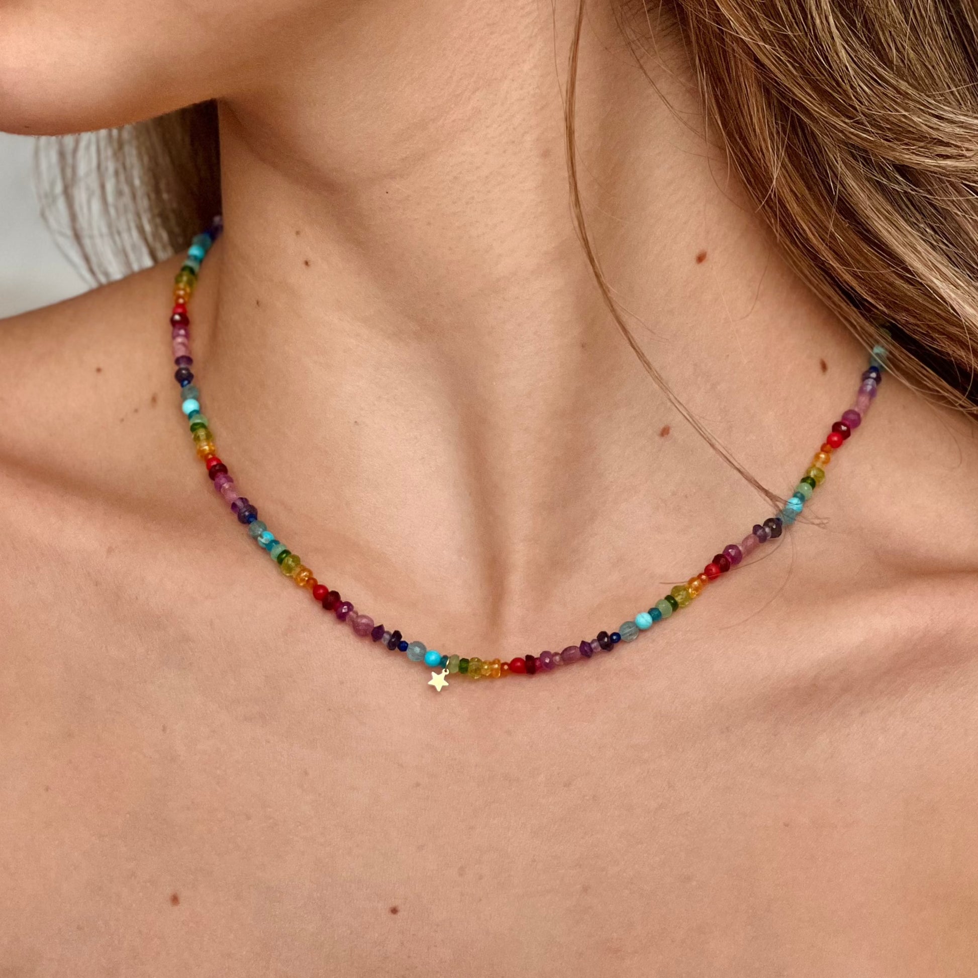 Multi-Gemstone Rainbow Drops Friendship Charm Necklace