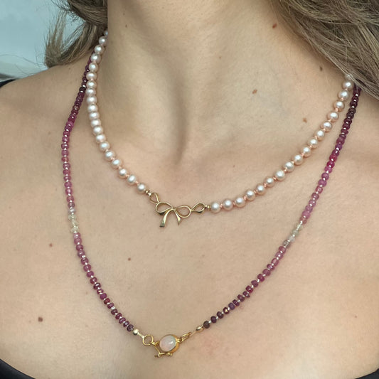 Rhodochrosite Strawberry Quartz Pearl bracelet