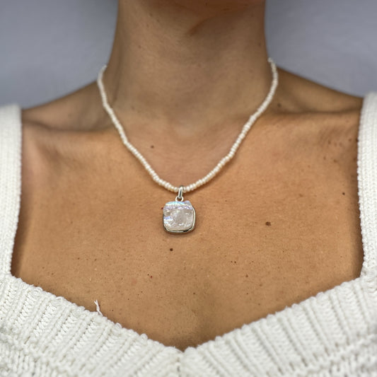 Freshwater Pearl Necklace with Raw Moonstone Pendant