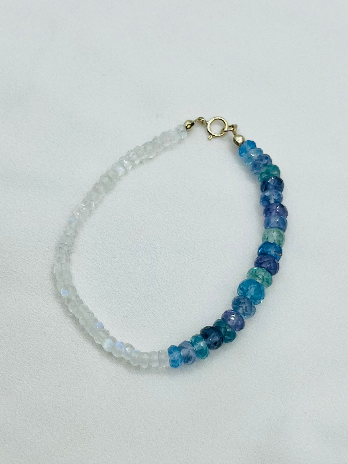 - Multi-colored blue, purple and smoky green sapphire and moonstone bracelet
