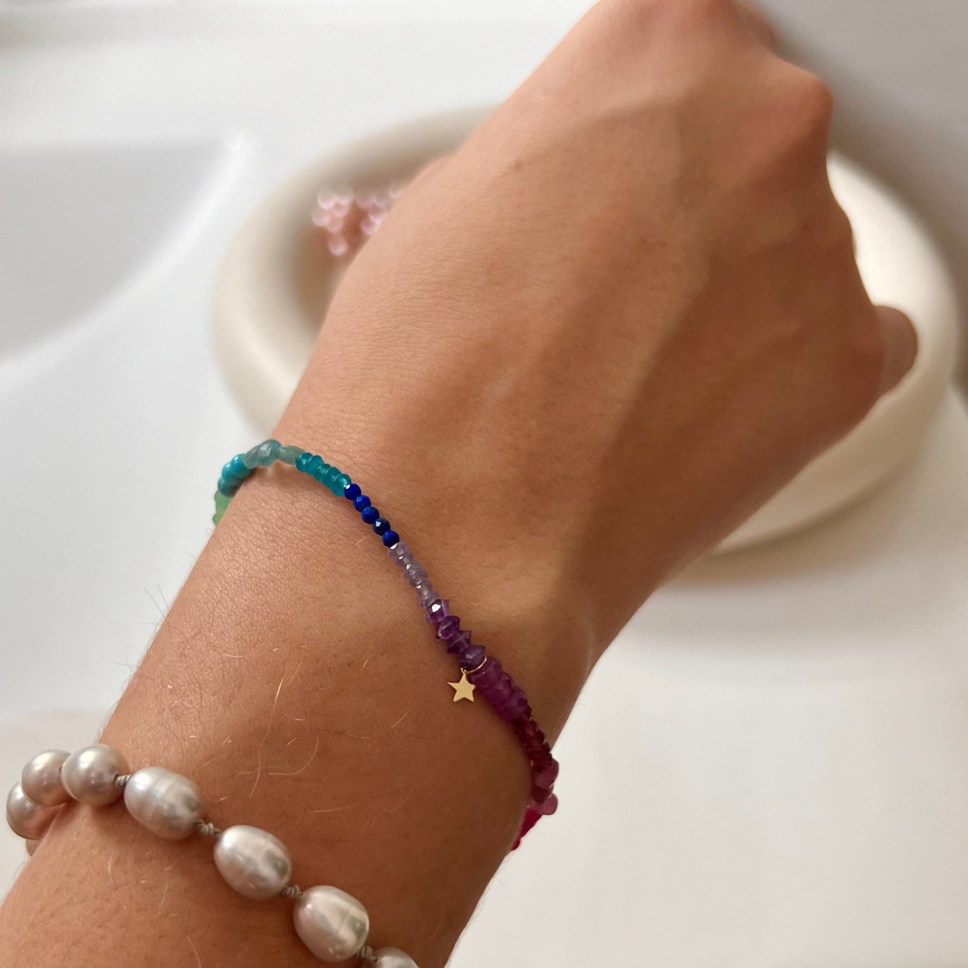 Multi-Gemstone Rainbow Stripes Friendship Star Bracelet