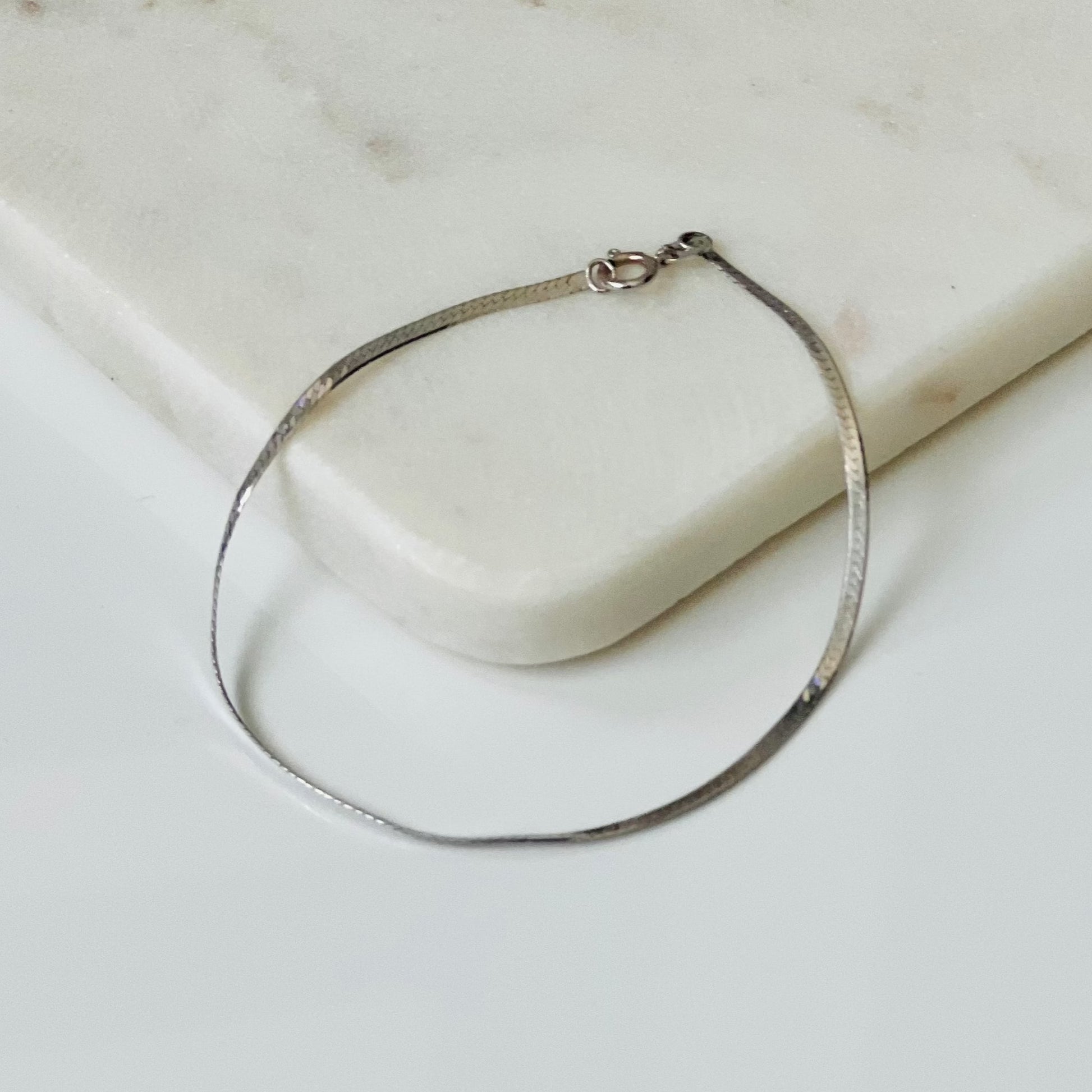 Introducing our Vintage White Gold Snake Chain Bracelet—a sophisticated addition to your jewelry collection. Crafted from exquisite white gold, this bracelet features a delicate snake chain design that exudes classic charm.
